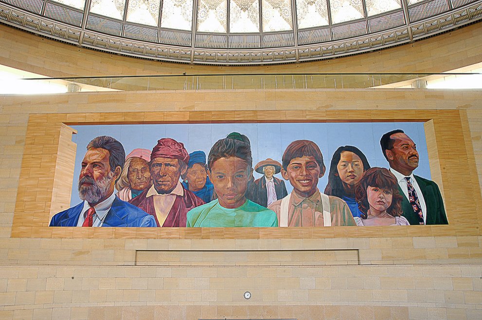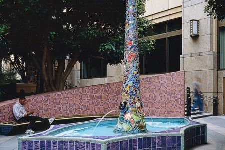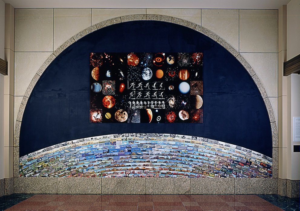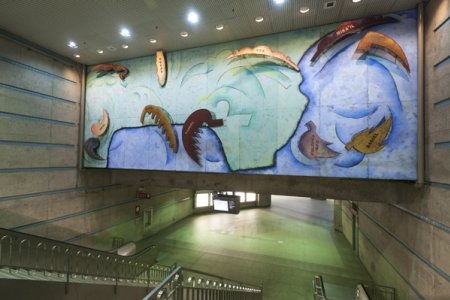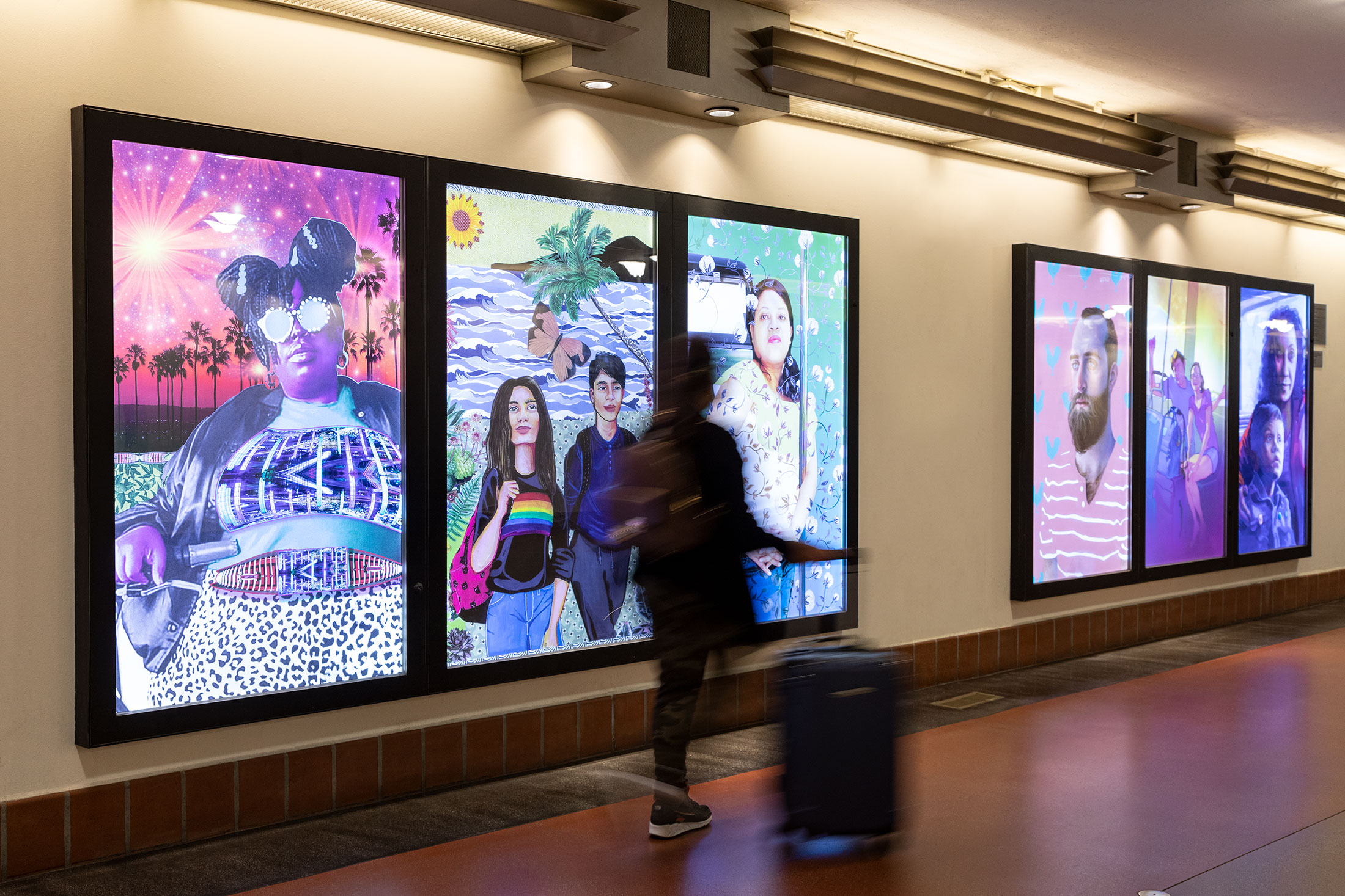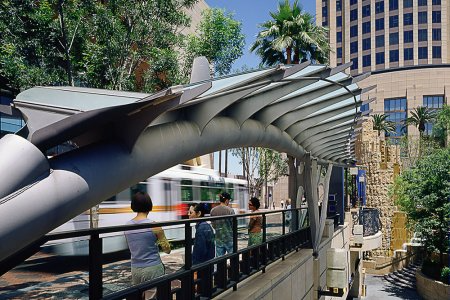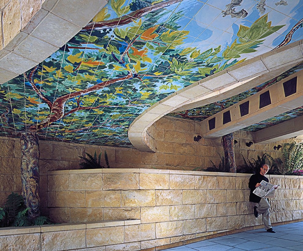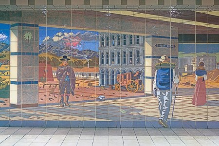 A diverse range of site-specific artworks are integrated into LA Union Station and the Metro Headquarters building (located east of the station and north of the bus plaza). These are among hundreds of other unique artworks at Metro sites throughout Los Angeles County that enrich the transit environment and foster a sense of place for customers and visitors.