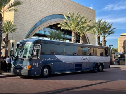 Premium bus service with trips to Fresno, Las Vegas, Phoenix, Sacramento, San Francisco, San Ysidro and Yuma. Departure and Arrival Information: Greyhound departures are located in Union Station East off of N. Vignes Street at Patsaouras Bus Plaza, Bus Bay #8. Arrivals are at historic Union Station West off Alameda Street.